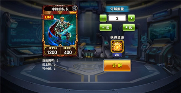 3、分解一张冲锋的队长卡牌,可获得200单位荒魂。需要注意的是,被分解卡牌的稀有度越高,最终返还的资源数量就会越多。