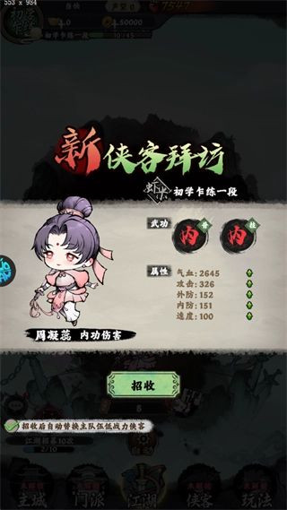3、当战力较低的侠客前来拜访时,可选择谢绝其拜访,此时原侠客能够获得威望