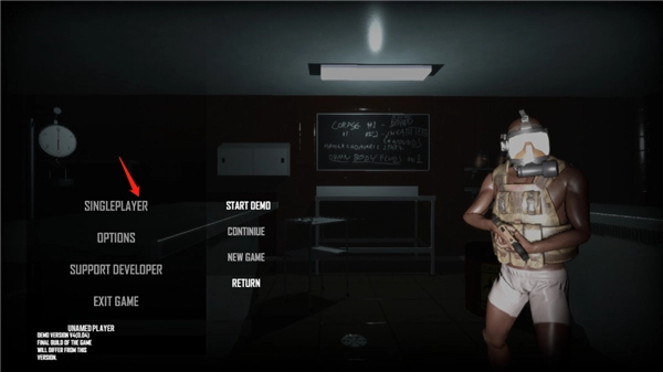 值得一提的是,《人渣Scum》支持多人联机游戏模式,玩家可以邀请好友共同组队,在危机四伏的世界里并肩作战、相互支援,从而更有机会在残酷的生存竞争中存活更长时间。1、启动《人渣(SCUM)》正版游戏,稍作等待完成加载后进入游戏首页,点击“单人游戏”选项。该界面包含游戏演示、继续游戏和新游戏三个功能,我们选择点击“开始演示”。