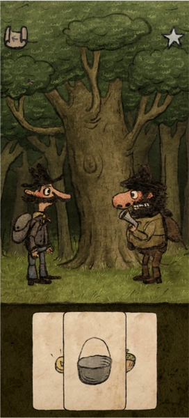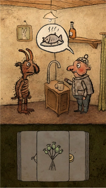 4.游戏没有固定的流程,玩家可以拖拽卡牌来和场景、NPC进行互动,还能自由搭配道具与角色行为,以此触发各种各样的剧情分支。