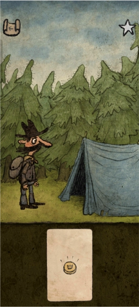 2.进入游戏完成初始剧情后,会获得一张卡牌,点击卡牌搜索营地即可获得一枚金币。