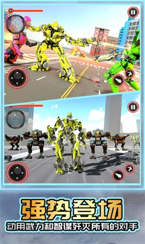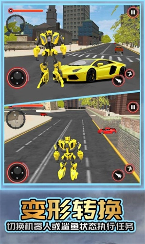 2、机器人具备变形能力,玩家能够在超级英雄战争机器人与飞龙这两种形态间实现无缝切换。