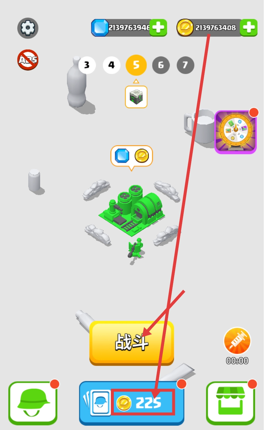 在点击【战斗】按钮之前,你可以消耗225个金币来提升战力,建议合理规划资源,为接下来的关卡战斗提前做好准备。