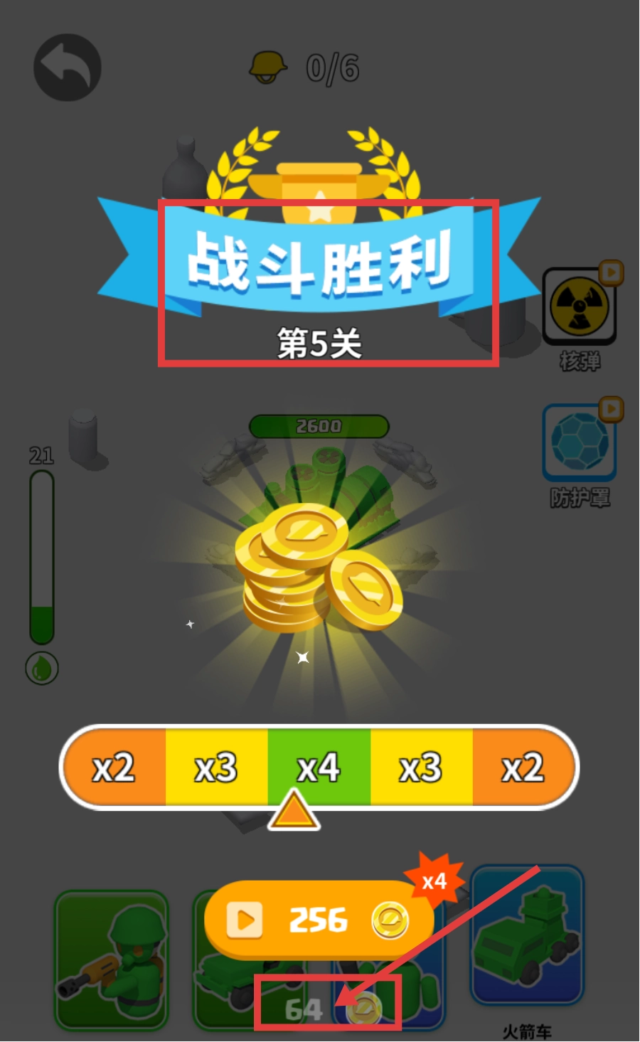 4、完成【战斗胜利-第5关】后,可领取【金币-64】的奖励,这些资源可用于后续单位升级或资源获取的积累。
