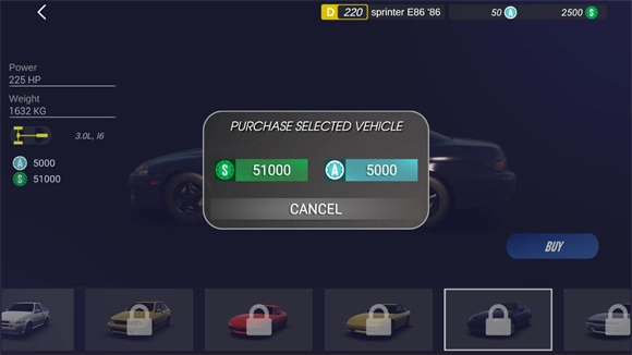 3、点击后消耗一定数量的金币就可以解锁该车辆。