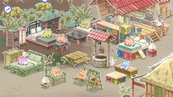 在游戏里,你会和萌萌的蛙蛙们一起生活。你可以培育这些可爱的小家伙,让它们帮你清除农田里的害虫;还能种植各类作物收获农产品,解锁更多装饰来装点你的小天地;和蛙蛙们互动,就能感受最治愈的日常;持续耕种,更能体验种田的无穷乐趣。