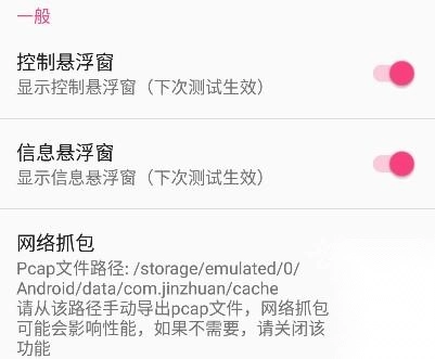 4.运用网络抓包功能:依据实际需求判断是否开启网络抓包,随后按照给定路径`/storage/emulated/0/Android/data/com.jinzhuan/cache`导出Pcap文件,以便开展后续分析工作。