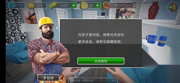 4、在房子里闲逛,搜索任务目标,更多信息,请参见屏幕底部。