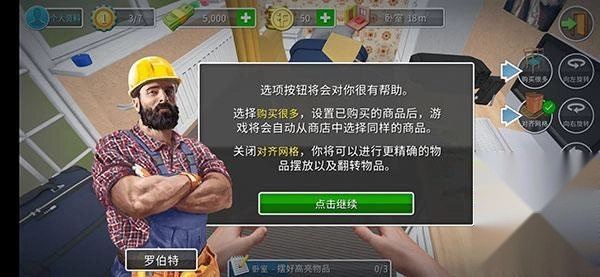 9、选项按钮能给你带来不少便利。要是选择“购买很多”并设置好已购商品,游戏就会自动从商店里挑选相同的商品。把对齐网格功能关掉,你就能更精准地摆放物品,还能翻转物品。