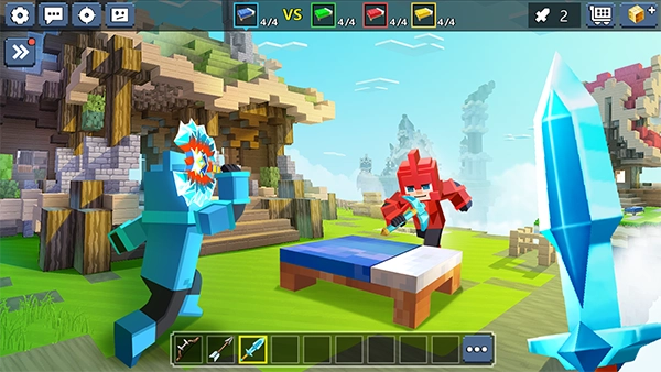 起床战争的最新版本,英文名称是Bed Wars。这是一款趣味十足的像素风格沙盒模拟游戏,由Blockman GO Studio开发推出。它融合了动作、经营、养成、对战、竞技等多种玩法,还加入了当前非常流行的“吃鸡”元素。游戏开始时,16名玩家会被划分成四个四人小队,每个小队都将在独立的岛屿出生,岛上设有各自的基地与床——只要床未被破坏,小队成员就能复活重生。玩家需要持续挖掘岛屿上的资源,与基地的商人交易,兑换各类道具和武器;随后利用这些武器与资源搭建通往其他岛屿的路径,抢夺对方资源并击败对手,最终存活到最后的队伍将赢得胜利。