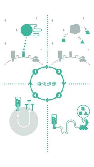 1.寻找废弃的行星进行绿化,恢复其自然活力,恢复美丽的行星。