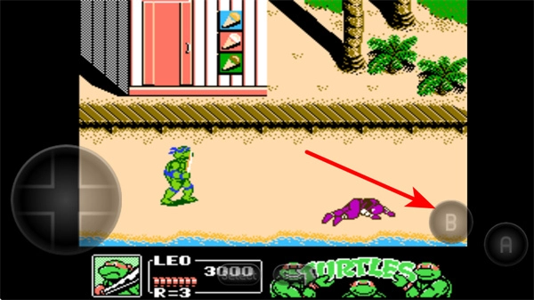 2、按照箭头的指示,点击B按钮来发动普通攻击,先削减敌人的血量,与此同时积攒释放大招需要的能量。