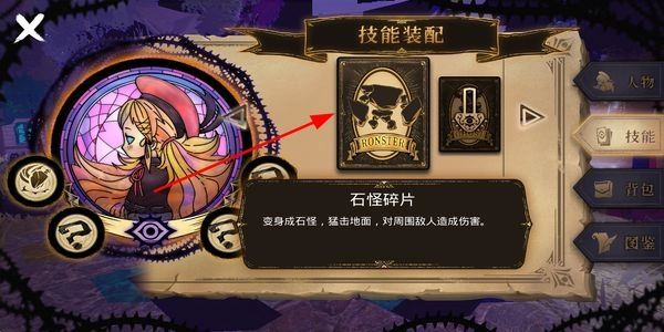 4、进入技能装配界面,选择技能卡片进行装配,获得对应技能效果,强化角色的战斗能力。