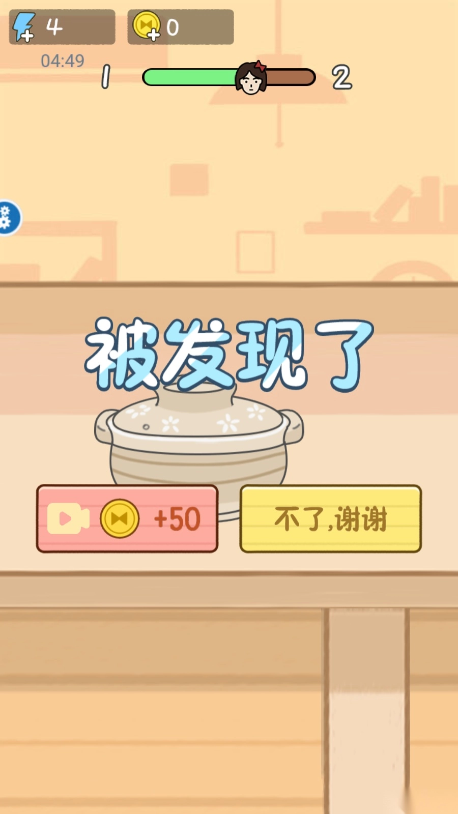 4、您得避开猫咪的视线,要是被猫咪发现就会失败,得花费50金币才能继续挑战