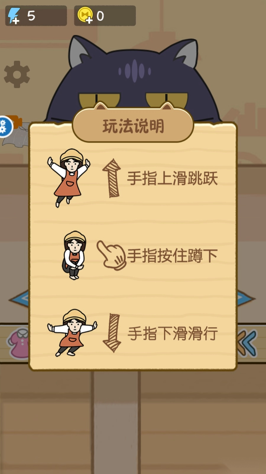 3、玩法介绍:手指上滑跳跃、手指按住蹲下、手指下滑滑行,控制方式很简单