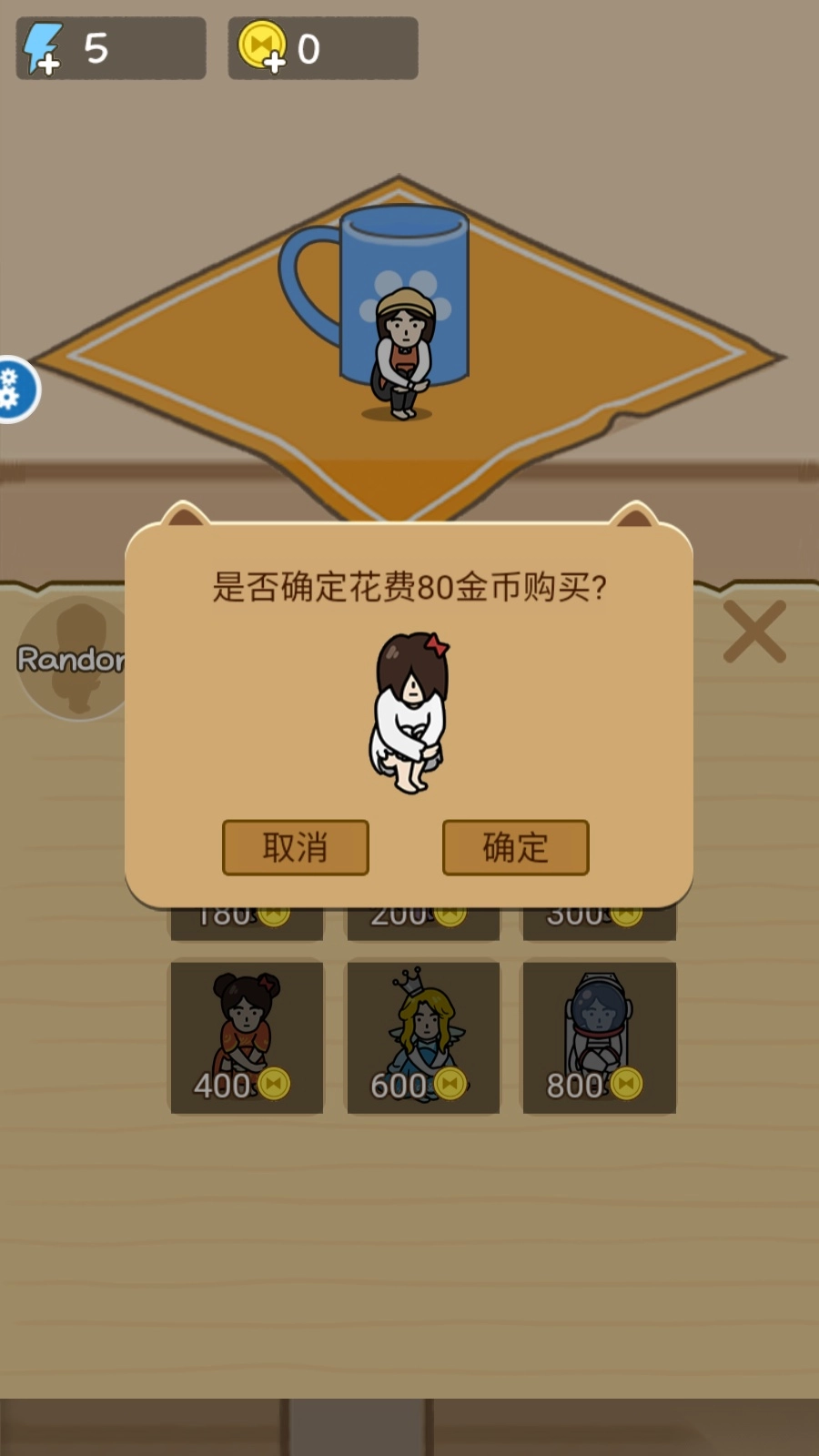 2、如图所示,提供不同的角色,在游戏花费80金币购买第二关金币