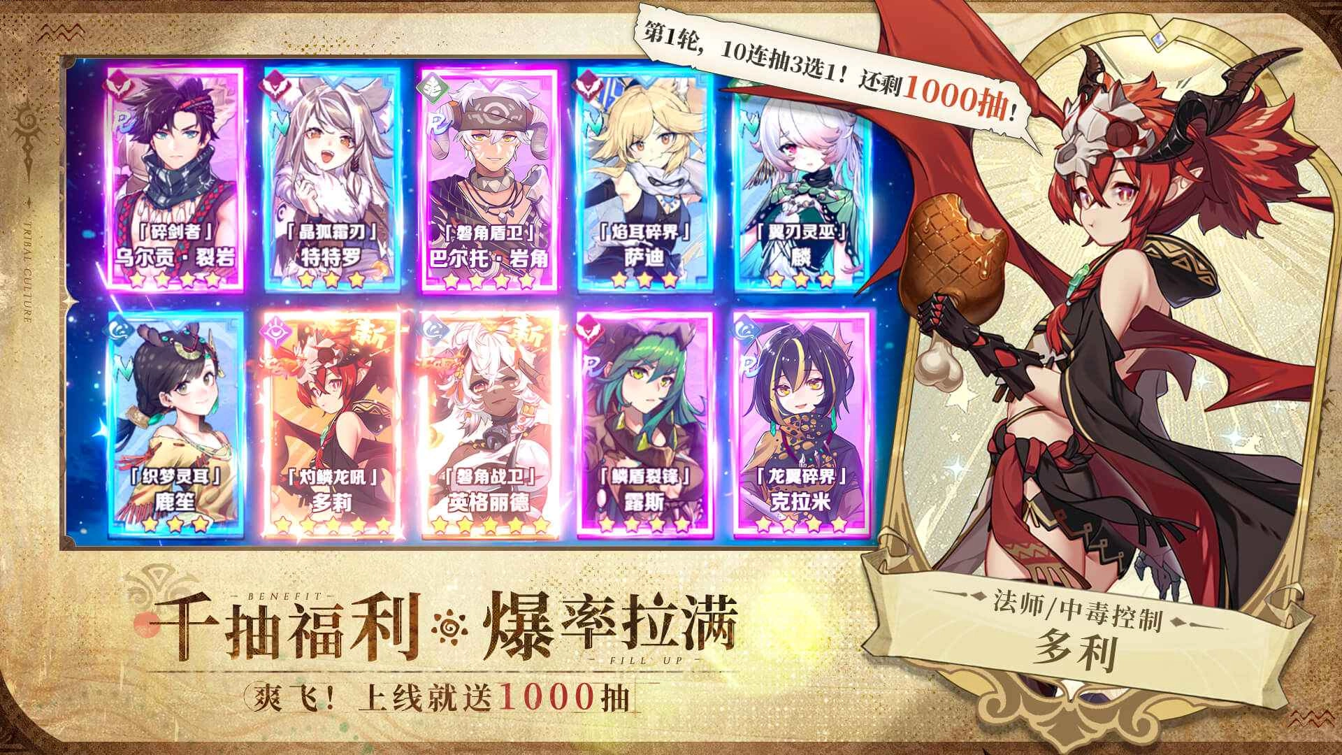 2、福利丰厚诚意十足,刚上线就能领取1000次抽卡机会,高爆率设计让获取SSR+级角色变得轻松,新手阶段就能快速组建起强力队伍,彻底告别卡关带来的挫败感。