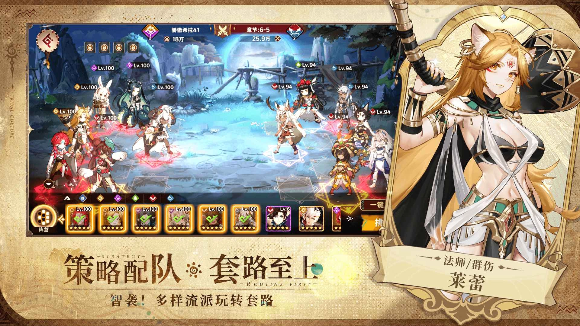 2、强力输出阵容:莫斯娜(单体流血效果)+希达(单体追击技能)+薇拉(群体伤害与控制)+米库娅(治疗及复活能力)+贝尔(单体连击机制)+坨坨子(后排沉默干扰)