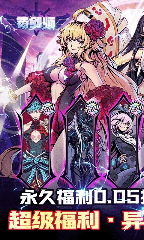 《铸剑师》是一款二次元放置卡牌策略游戏,上线充值享0.05折优惠,更有免费千抽福利礼包。每日签到、累积登录游玩,你将在未来异次元世界化身强大异能者,争夺专属荣耀。游戏内拥有海量异能者角色,可供你自由升级与养成!