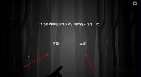 3、随后,根据提示选择“蝴蝶”或“蜜蜂”模式,确保两人选择一致;