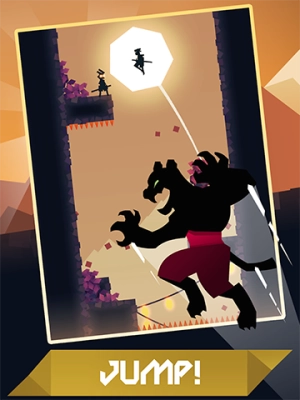 1. 操作简洁直观,只需点击和滑动就能操控忍者跳跃与移动,滑动松开后忍者便会腾空跃起,不仅易于上手,还能让人轻松沉浸其中。
