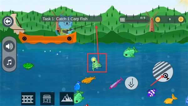 1、操作逻辑简单易懂,长按即可控制鱼竿的抛投距离,当鱼上钩后,长按对应的按钮就能完成收竿动作,即便是新手也能迅速掌握垂钓的核心流程。