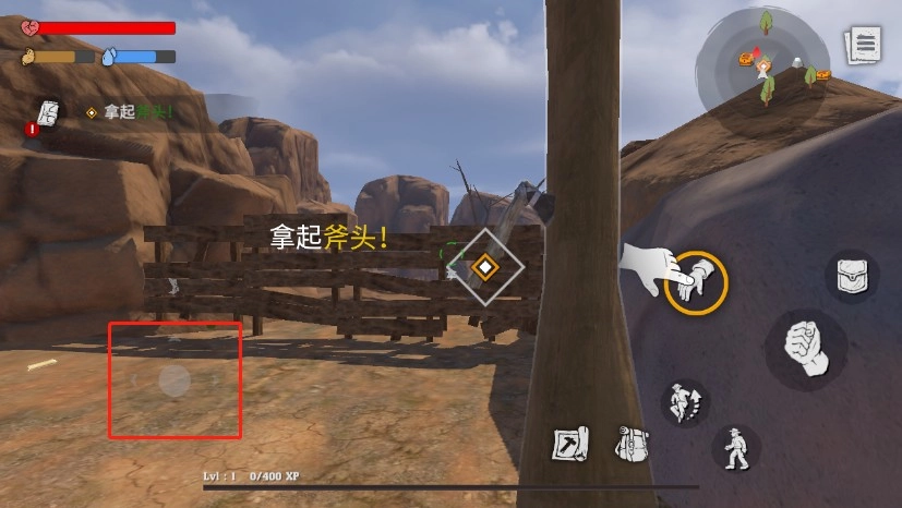 5、拿起斧头后,点击斧头按钮获取木材;