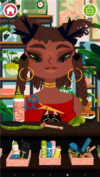这是一款不用教程也能轻松上手的游戏,不过一些小细节能让体验更流畅。比如角色头发会有轻微飘动,这并非Bug,而是为了让修剪过程更具真实感;这时拿出刀片梳子,顺着头发的走向轻轻一推,就能固定住发束再进行裁剪。