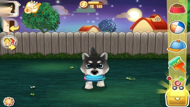 4、通过触摸屏进行互动,可以抚摸小狗,给它喂食、浇水,还能帮它洗澡或者陪它玩耍。