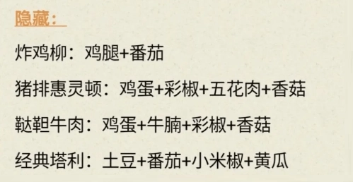 排骨焖饭作为隐藏菜单,集齐四种食材可解锁成就奖励。