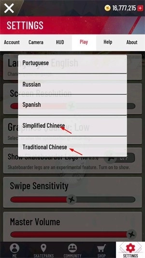 4、点击language后向下滑动,选择最后两个包含Chinese的选项,它们分别是简体中文和繁体中文。