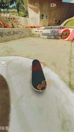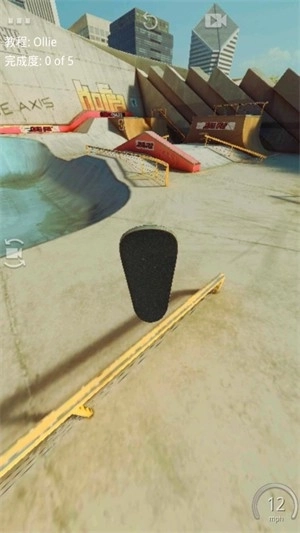 5、滑行时点击滑板尾部,接着快速点击板面中间位置并向左滑动,能让滑板完成360°翻转;翻转过程中点击板面中间,即可使它停止转动。