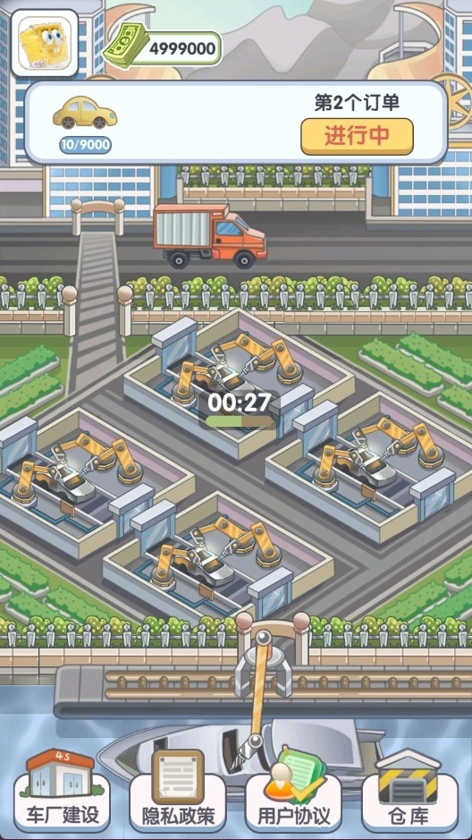 《我的帝王之路》是一款以工厂制造为核心题材的模拟经营游戏。在游戏中,你将化身为汽车工业领域的大亨,通过设计生产汽车、销售汽车的方式来积累财富,进而不断拓展自己的商业版图。游戏采用了卡通风格的画面设计,这种画风受众广泛,能够让不同年龄段的玩家轻松接受。操作方面也十分便捷,主要通过点击操作即可完成大部分游戏内容,不需要玩家具备快速的手速,也没有紧张的时间限制,整体营造出一种休闲放松的游戏氛围,非常适合在闲暇时间进行游玩。