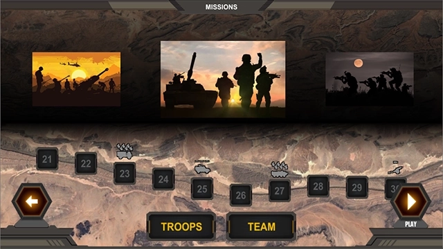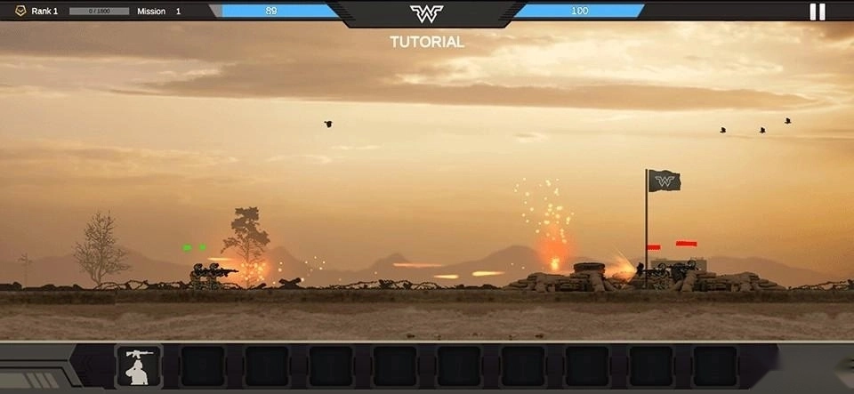 投身充满动感的2D战斗场景,这里有大批士兵、装甲车与空中支援协同作战。精准调度你的部队,引领他们在战场上赢得胜利。