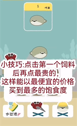 3、这里有个小技巧:先点击第一个饲料,再选择最贵的那一款,这样就能用最低的成本获得最高的饱食度。