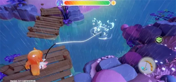 第四步:鱼一开始会挣扎(如图4),此阶段可以慢点拉线,也不要完全不操作,鱼跑太远会失败