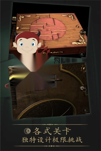 2、全景益智游戏运用全3D画面,支持360度自由旋转,并融合了精心设计的机关。