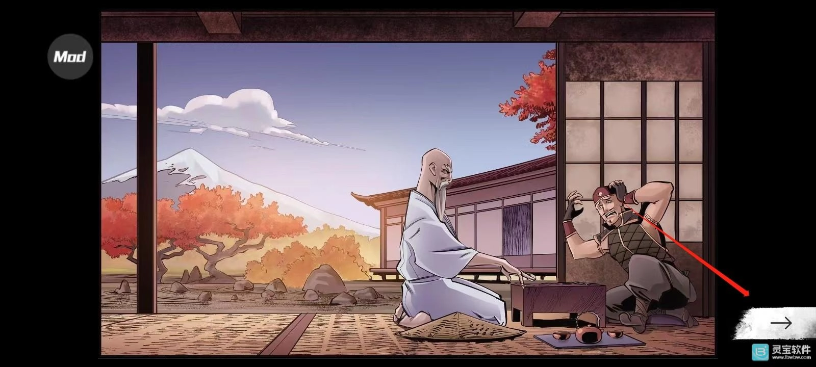 3、接着游戏会有一段动画,点击右下角的箭头;