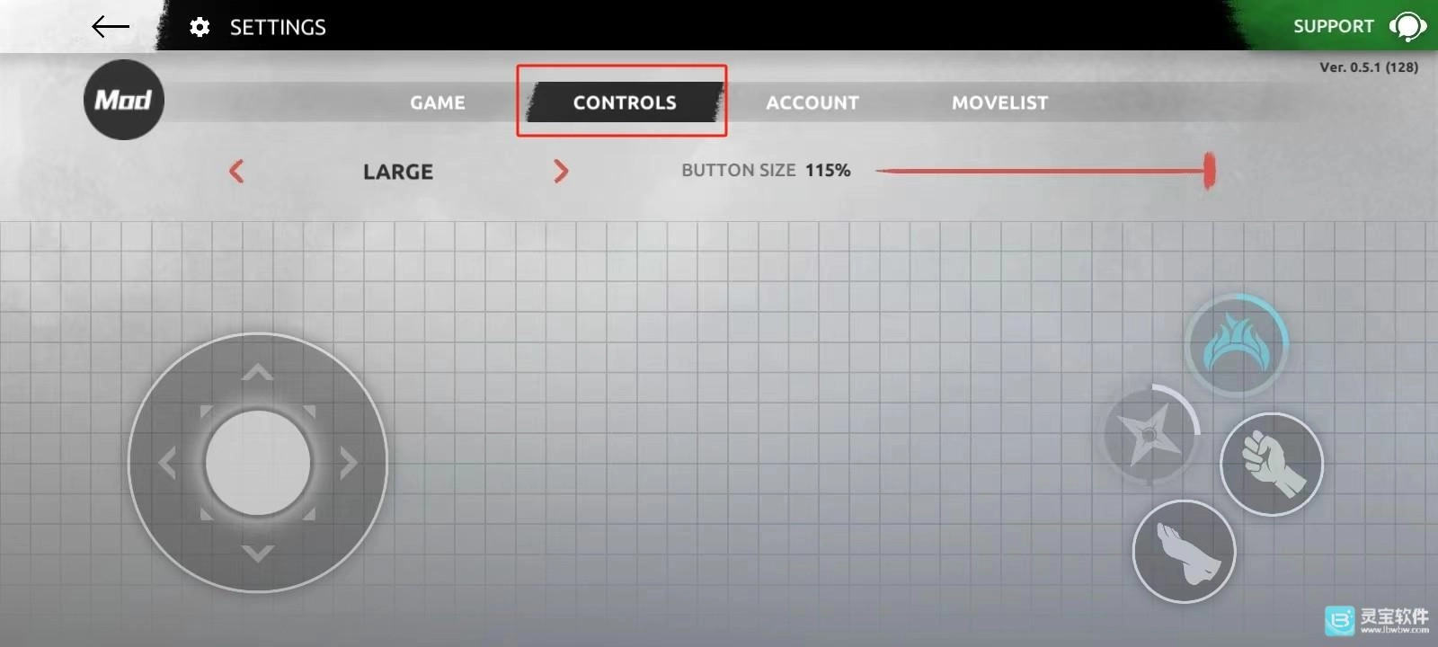 8、点击右上角的设置按钮,选择【CONTROLS】选项,玩家可根据自己的操作习惯调整控键大小,感兴趣的话不妨来试试吧~