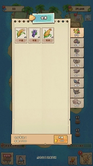 9、收获的物品会自动存入仓库,仓库是存放所有物品的地方,但和《外婆的小农院》一样,仓库有容量上限,升级仓库就能提升容量。