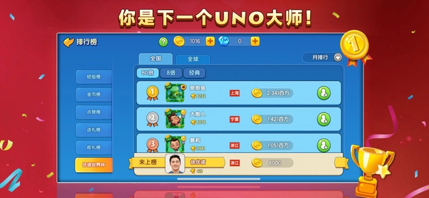UNO世界杯是一项面向全球的赛事,吸引了来自204个国家和地区的玩家参与,中国区的冠军将代表中国角逐全球排名。