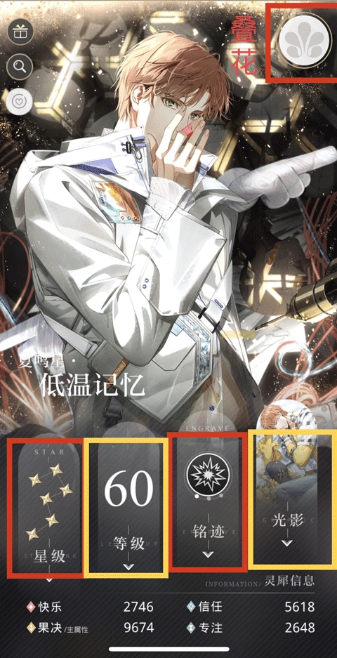 补充:6星或5星暴击卡有叠花开二段光影等级铭迹全拉满,无花升到60级开二段光影铭迹拉满。