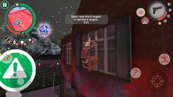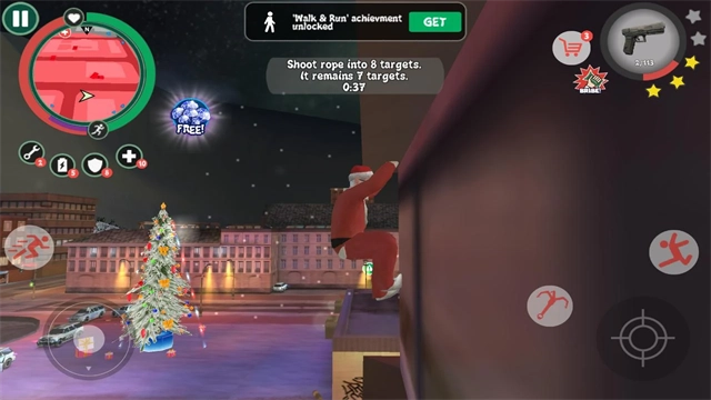 2、游戏还有点像绳索英雄,圣诞老人可以用魔法钩索来飞来飞去,很爽
