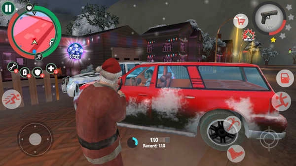 1、这是一款能让你扮演圣诞老人自由进行犯罪活动的手机游戏,在正式开始游戏前,你可以为自己的圣诞老人角色搭配好各种装备。
