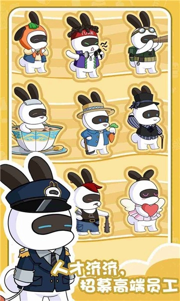 4、【自由招募】每只兔子都有着独特的能力与外观,模样都十分可爱,需要进行合理安排。
