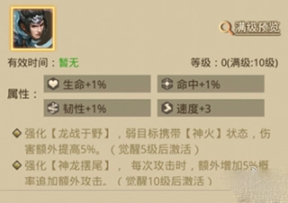 觉醒之后,一技能“龙战于野”增添了新机制:要是敌方处于“神火”状态,该技能就会额外增加5%的伤害;三技能“神龙摆尾”则得到了追击概率的加成——每一次释放都有5%的几率触发一次额外的连击,以此进一步增强持续压制的能力。