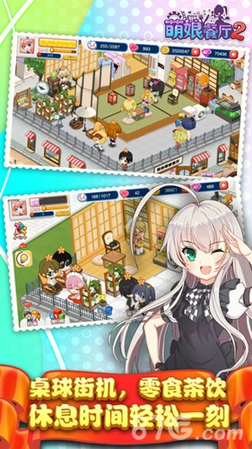 《萌娘餐厅2》是一款融合了二次元风格的模拟经营与卡牌育成游戏。在游戏里,你将化身店长,在小助理的陪伴下打理餐厅,还能和朋友们开展多样的社交互动,感受梦幻般的虚拟生活,谱写充满趣味的餐厅故事。游戏玩法十分丰富,既能作为休闲小游戏来玩,也能像恋爱游戏那样养成美少女,不管是热爱ACG的御宅族,还是喜欢模拟经营和轻松休闲类游戏的萌妹子,都千万不要错过哦~