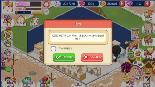 大家可以看到party进度条旁边有个时钟,这个时钟就是用来参加餐厅评比大赛的,当时钟走满一圈后,就可以举行比赛了。