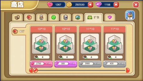 选择我们这个等级能支持扩张的面积【10*10】,优先用友情值来支付扩张费用,如果不够的话才考虑钻石。