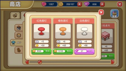 进入【商店】,找到【餐厅】栏,选择我们想要购买的餐桌,大家要根据自己拥有的资金来衡量,不要超出预算,在此小编选择了图钉茶几。